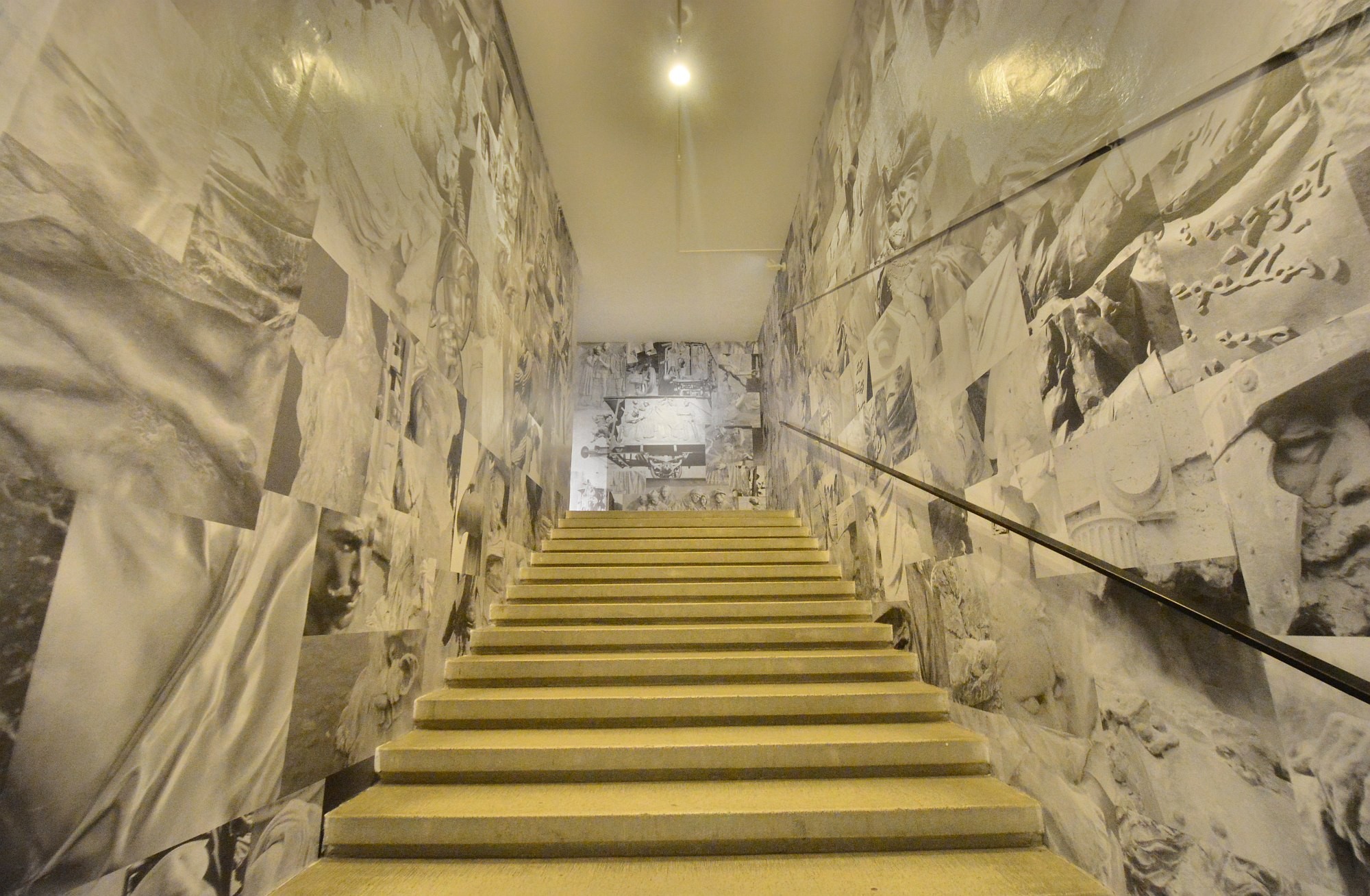 A Csók István Képtár kiállító terében a művész alkotásainak három csoportját láthatja a közönség: 16 szobrot, 12 grafikát - amelyek döntően Párkányi Raab Péter szobrászati munkáihoz készült virtuóz ceruzarajzok - és 22 nagyméretű fotót, amelyeket a különféle technikával végzett átalakításoknak köszönhető kétdimenziós szoborként jellemezhetőek. A lépcső mellett fotómontázst láthatunk, ami a művész hatvan köztéri alkotásából ad ízelítőt.