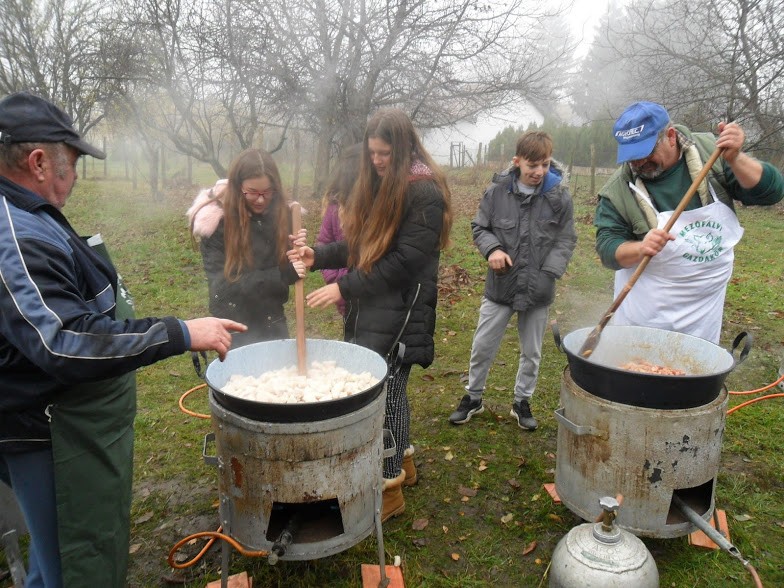 Remek dolog, hogy a gyerekek kézzel fogható közelségből kapnak információt, miként kerül az élelmiszer az asztalra. Nem iparszerű, hanem hagyományos, régi háztáji feldolgozás körülményei között láthatják a vágást. A perzseléstől a kolbásztöltésig gyakorlatilag a teljes folyamatot megfigyelhetik, és egyes fogásokat maguk is kipróbálhatják. A sertés bontásakor igazán nagy érdeklődéssel figyelik a belső szervek kinézetét, felépítését. Ilyenkor mindig mondok hozzá magyarázatot, mint például a csípő izületnél majd ezt cserélik a betegeknek, vagy a gerincvelőnél, ha megsérül valaki egy balesetnél, akkor az miért jelenhet tolókocsit. Rendkívül érdeklődőek, segítőkészek a gyerekek, és a felnőttek is mindent elkövettek, hogy élményekben, tudásban gazdag napot zárhassanak az iskolában