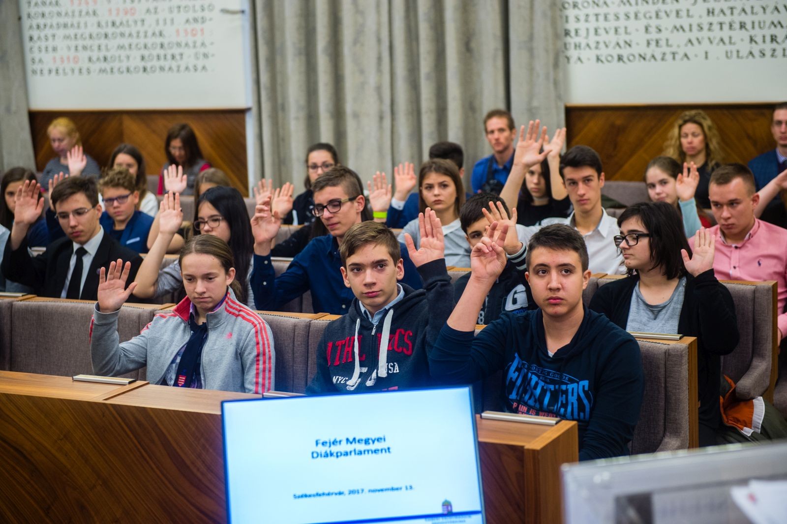 Székesfehérváron, a Városházán ülésezett a Fejér Megyei Diákparlament. A rendezvényen köszöntötte a résztvevőket Cser-Palkovics András polgármester is, aki elmondta, a város szeretné elérni azt, hogy hagyományt teremtve – az állam döntésétől függően két, vagy háromévente – Fehérváron kerüljön sor az Országos Diákparlament üléseire.