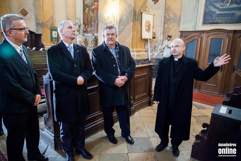 Fontos találkozások, bejelentések színhelye volt ma Ercsi Fő utcája. Soltész Miklós egyházi, nemzetiségi és civil társadalmi kapcsolatokért felelős államtitkár, dr. Galambos Dénes, térségünk országgyűlési képviselője, Győri Máté, Ercsi polgármestere elsőként a római katolikus egyházközség plébániájában tett látogatást, ahol Spányi Antal megyéspüspök és Tóth András plébános fogadta őket. A találkozó alkalmával az egyházközség életéről, és fejlesztési lehetőségeiről beszéltek. Ugyanis a plébániával szemközt lévő Nagyboldogasszony templom felújítására mintegy 670 millió forintot nyertek el, ezzel kívül-belül megszépülhet az épület. 10 millió forintból megújulhat a szószékkosár, amely összeg felét a Nemzeti Kulturális Alap, másik felét az önkormányzat támogatja. Folyamatban van még további két kisebb pályázat elbírálása: 15 millió forintból a plébánia épületét szeretnék energetikailag korszerűsíteni, valamint 5 millió forintot közösségerősítő fejlesztésekre fordítanának. A jelenlévők megtekintették a felújítás előtt álló nagytemplomot, ahol még közös imádságot is tartott a megyéspüspök. Spányi Antal úgy fogalmazott, a hitnek közösségteremtő ereje van, és ezzel a nagyszabású felújítással nemcsak külseje szépül meg a templomnak, hanem a lelke is. Soltész Miklós elmondta, 2016-ban a magyar történelmi egyházak nagyobb kormányzati támogatásban részesültek, ebbe bekerült az ercsi templom is, így kerülhet sor a 670 millió forintos beruházásra. A közelmúltban tárgyaltak arról is a kormányban, hogy próbálják segíteni az egyházközségeket a kisebb fejlesztéseikben is. Hálával szólt az ercsi egyházközség munkájáról, amelyet a hit és a közösség megmentéséért tesznek.