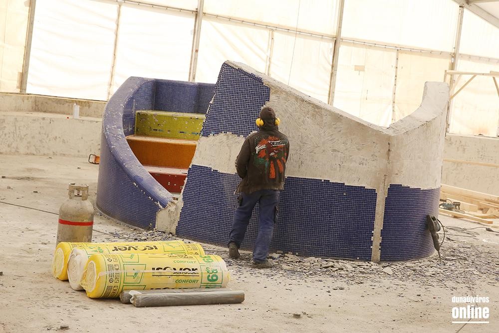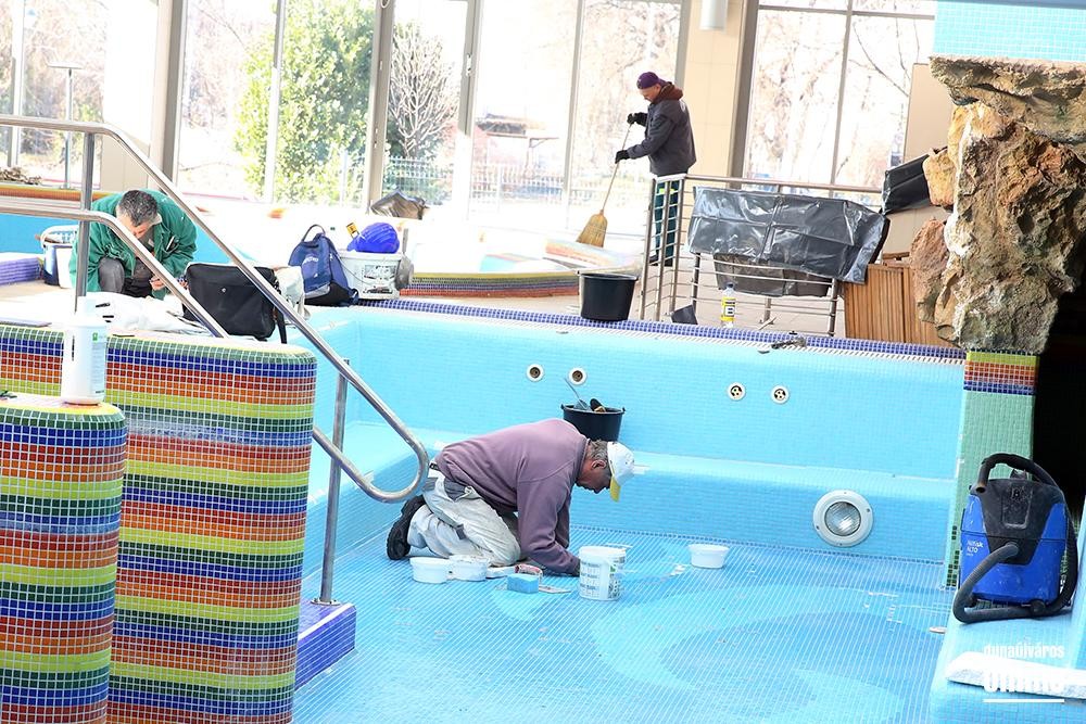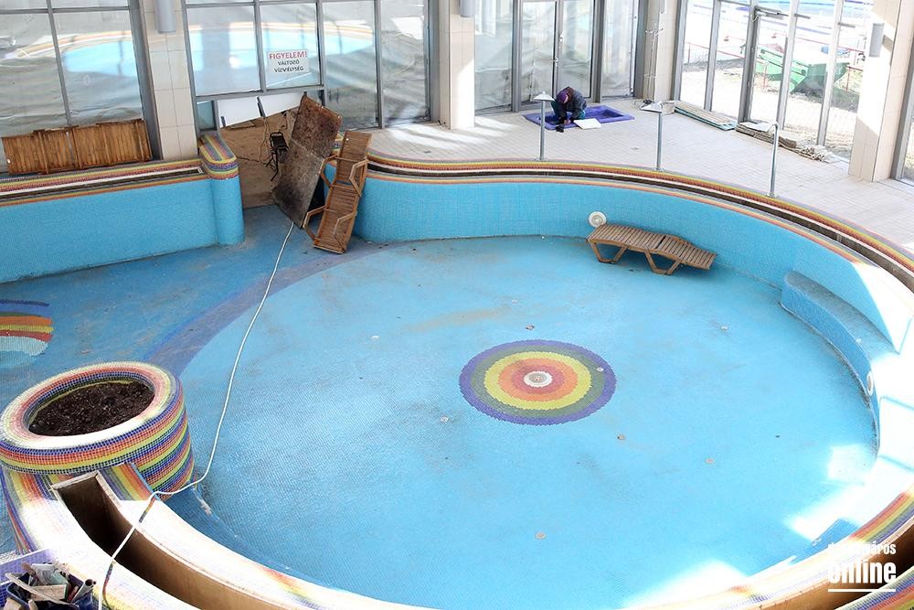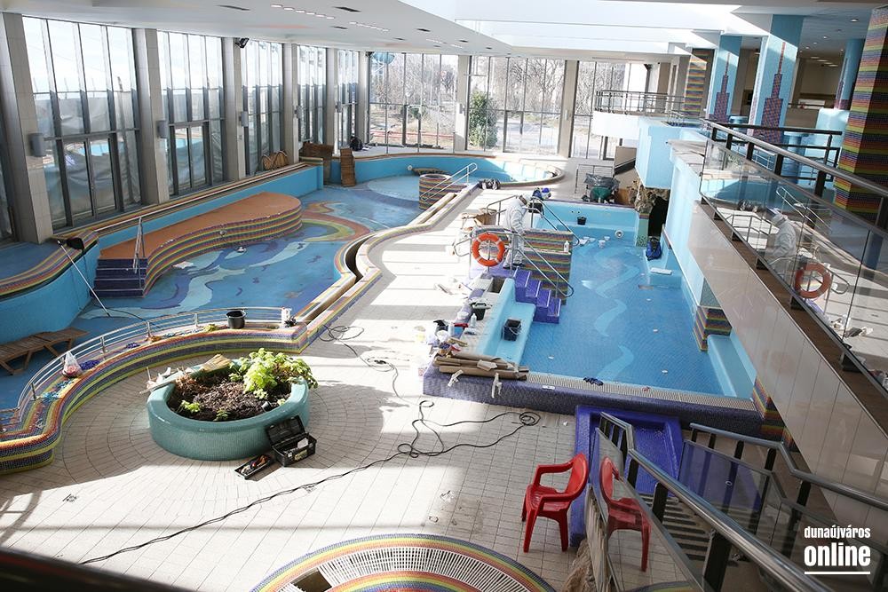 Cserna Gábor elmondta, hogy az élményfürdőt tavaly november elején adták át a felújítási munkával megbízott DVG Zrt-nek. A cég elkezdte a tényleges felújítási munkálatokat és közben az uszodatechnikai és egyéb szakspecifikus munkák elvégzésére közbeszerzési pályázatokat írt ki, majd azok nyerteseivel le is szerződött az elvégzendő feladatokra. A felújítás keretében megújítják a párátlanító rendszert, az épület teljes villamossági hálózatát, a csúszdákat, a medencék burkolatát, a gépészeti, uszodatechnikai berendezéseket, teljesen új beléptető rendszert alakítanak ki. A polgármester hozzátette, bár nagyon sok munkát ad a szakembereknek az évek óta nem üzemelt fürdő, jól haladnak a felújítási munkálatokkal, és az áprilisi próbaüzemet követően májusban, a jó idő beköszöntével megnyithatja kapuit a fürdő a városlakók előtt.