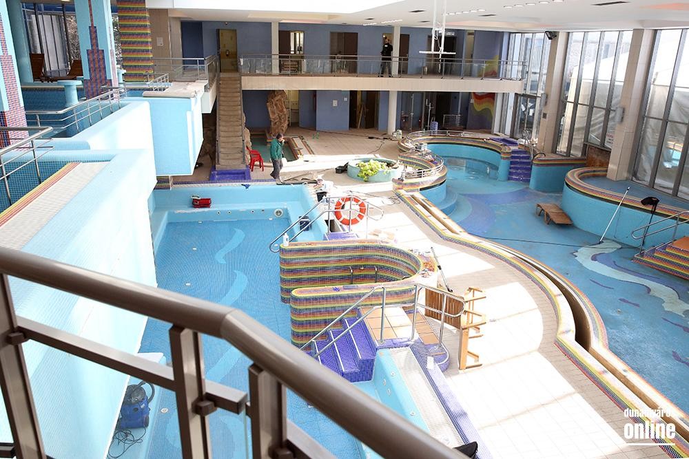 Mádai Balázs, a DVG Zrt. elnök-vezérigazgatója a bejárás során elmondta, hogy az élményfürdőt katasztrofális állapotban vették át. A fürdő bezárása óta eltelt évek, az időjárás viszontagságai mind otthagyták lenyomatukat a medencéken, leginkább a szabadtéri egységeken. A külső élménymedencét gyakorlatilag teljesen újra kell építeni, az idő ott végezte a legnagyobb pusztítást. A munka folyamatosságának biztosításához a külső medence fölé egy hatalmas sátrat húztak fel, ez alatt dolgoznak a munkások. A belső egységek műszaki állapota jobb, itt kisebb-nagyobb javításokra van csak szükség. Mint mondta, ezekkel áprilisra elkészülnek, és akkor jöhet a próbaüzem, majd pedig a terheléses próbaüzem. Amennyiben ezeknek a teszteknek a műszaki eredménye jó, akkor májusban a nagyközönség előtt is megnyitják az élményfürdőt.