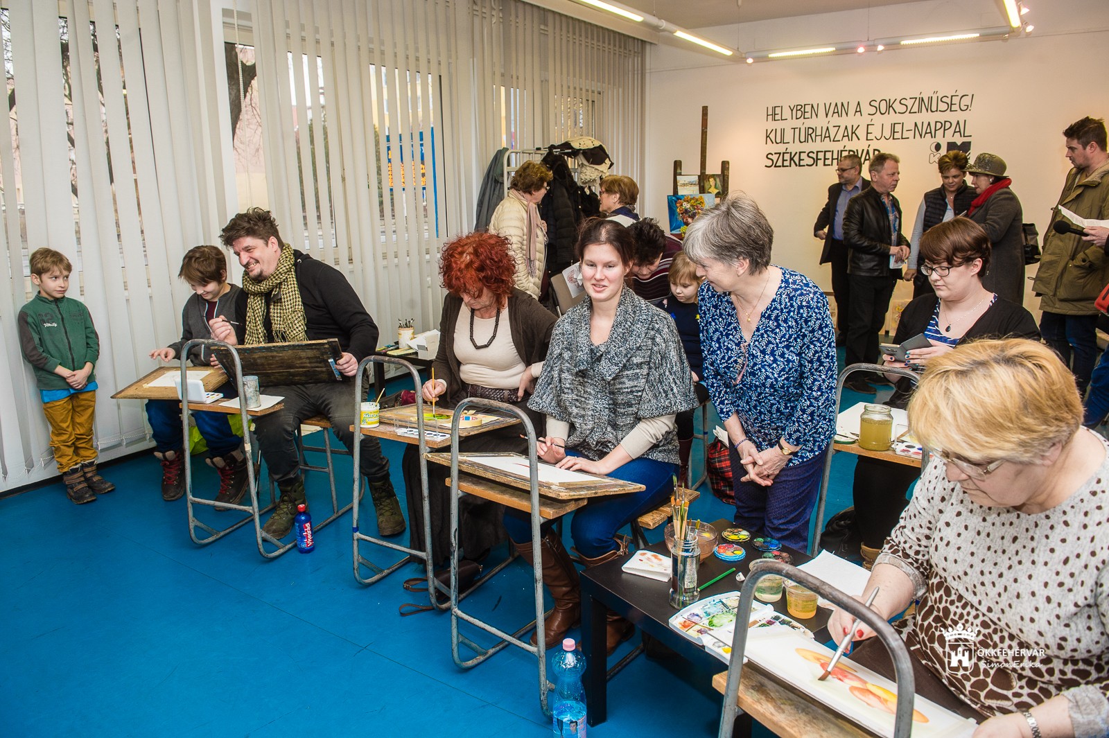 A kora délutáni órákban sokan keresték fel a Művészetek Házát, hogy alkotóként is kipróbálják magukat a Derkovits Képzőművészeti Kör segítségével és festés közben fedezzék fel kreativitásukat. A résztvevők ezúttal az akvarell technikáját sajátíthatták el.