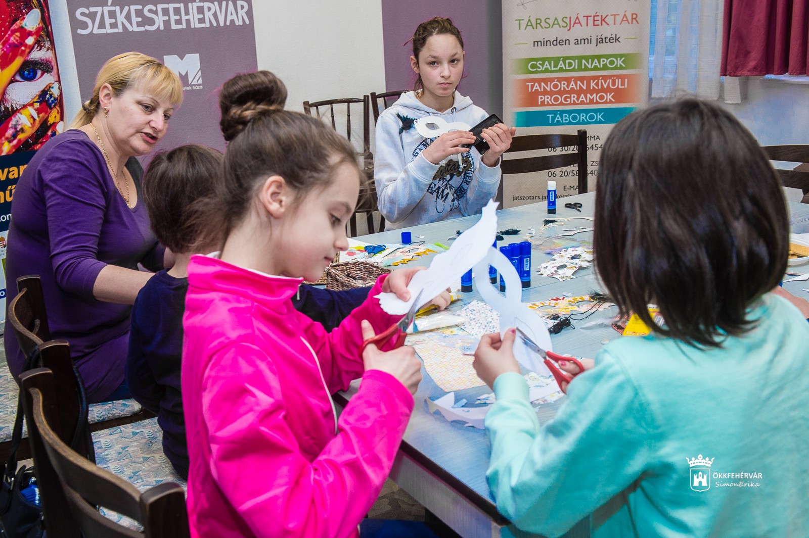 A résztvevőknek számos alapanyagot biztosítottak a munkához. A Játszótárs Játékkészítő Műhely küldetése, hogy megmutassák a szülőknek, nagyszülőknek, hogyan lehet értékes időt tölteni gyermekükkel. Együtt készítenek játékeszközöket, melyek otthon is egyszerűen elkészíthetőek. Az elmúlt időszak alatt sokféle tevékenységgel ismerkedhettek meg a műhely látogatói, készültek memóriajátékok fénymásolt alaplapból színezéssel, majd csomagolópapírból, lottó-játékok formalyukasztókkal és egyedi sudoku papírdúc satírozással.