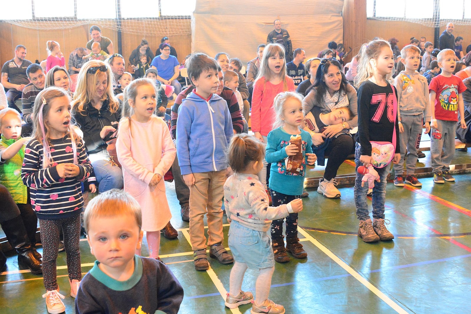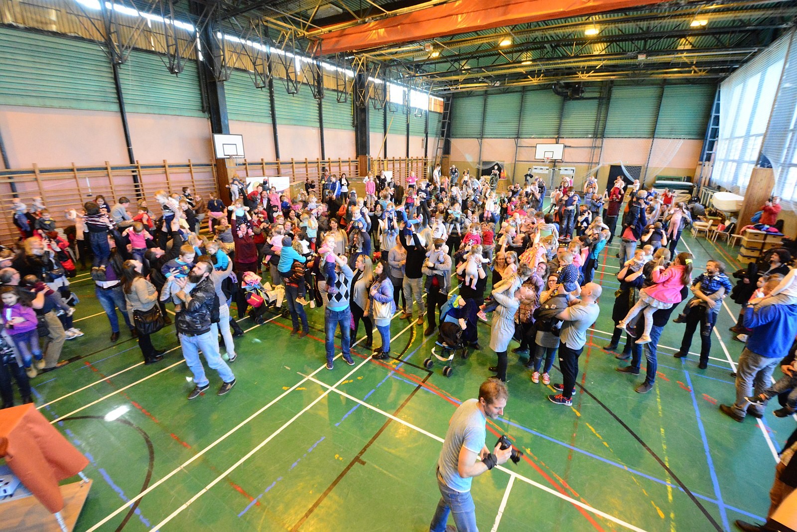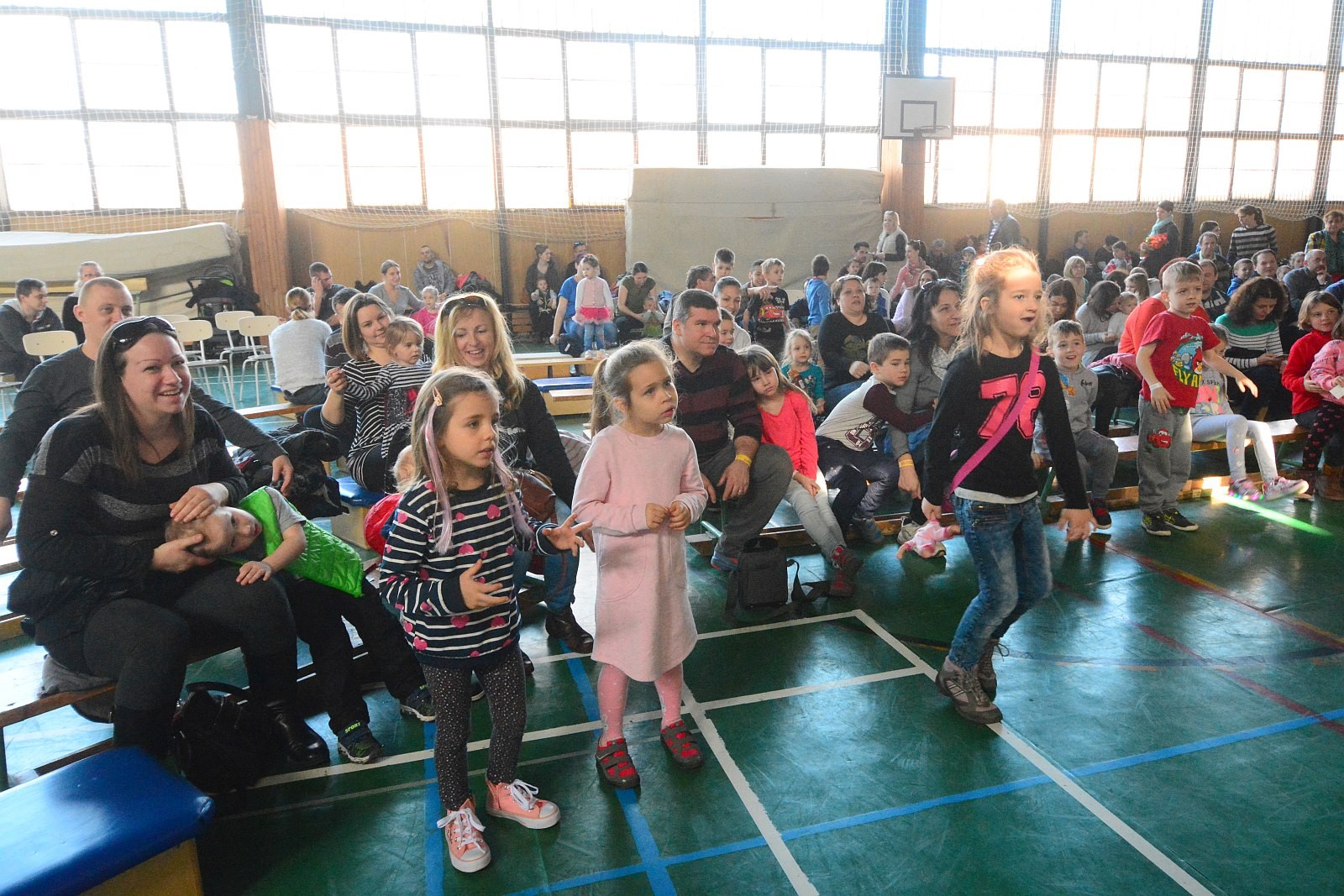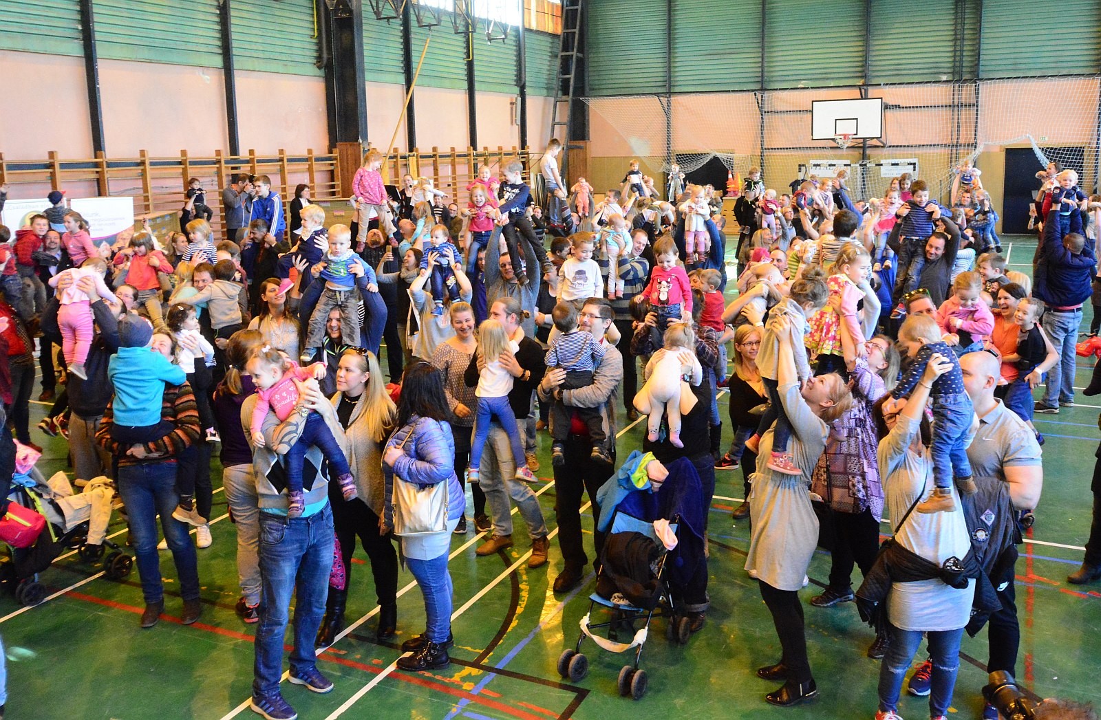 A Napraforgó Meseszínház előadása után pontban 11 órakor a résztvevők egyszerre emelték fel gyermekeiket, majd zenés táncház várta a családokat.