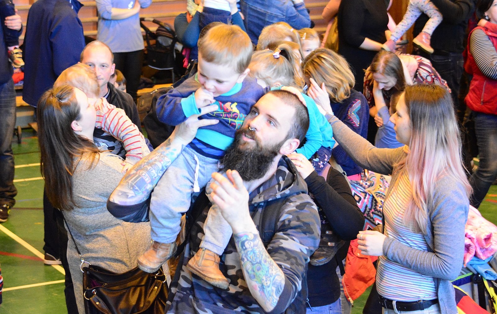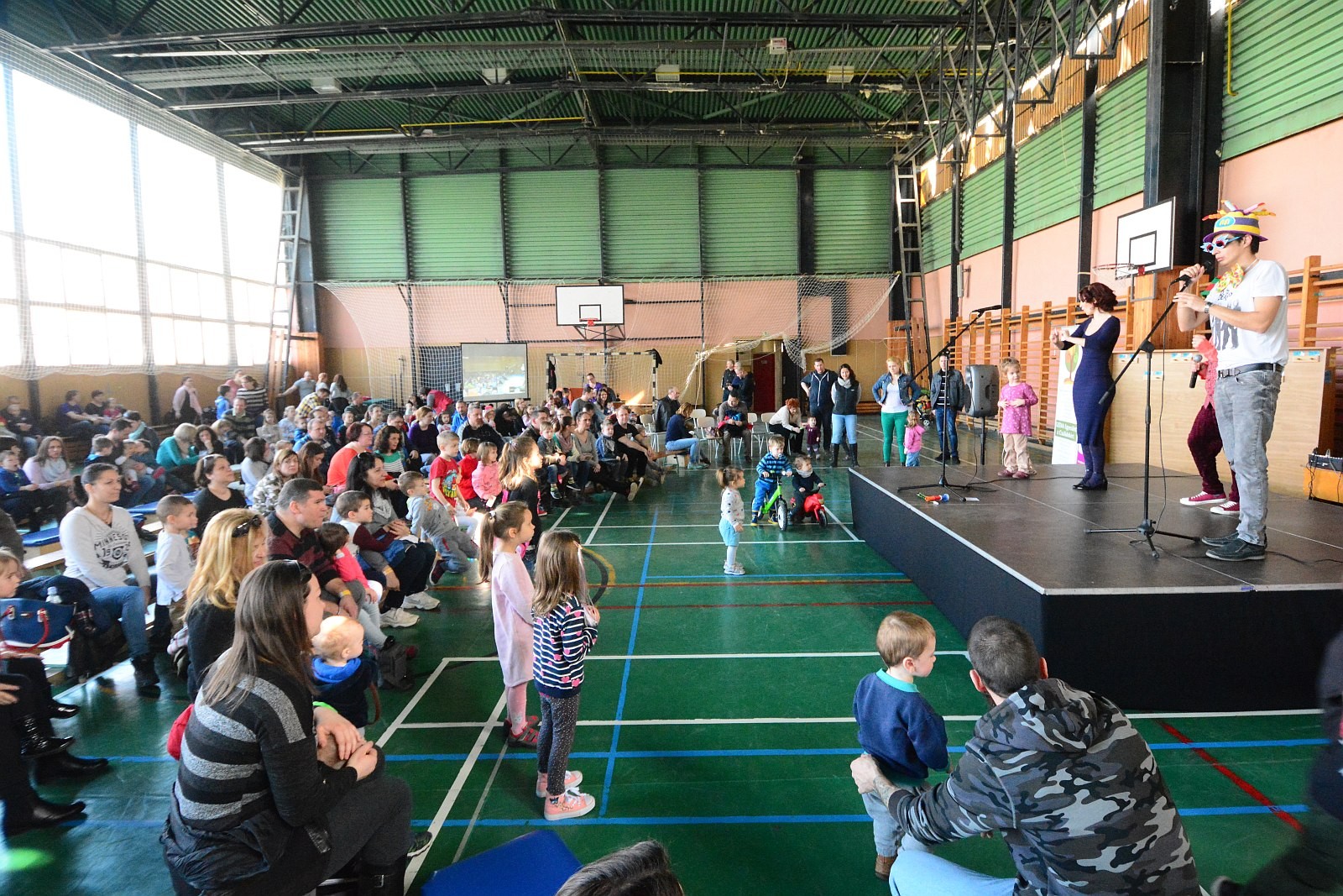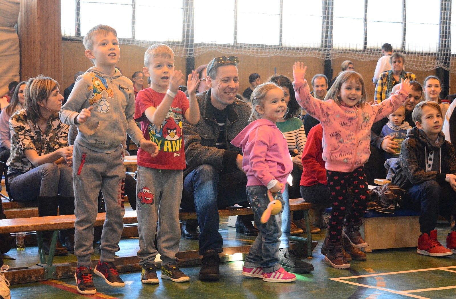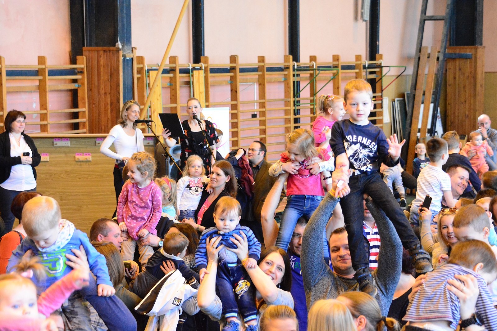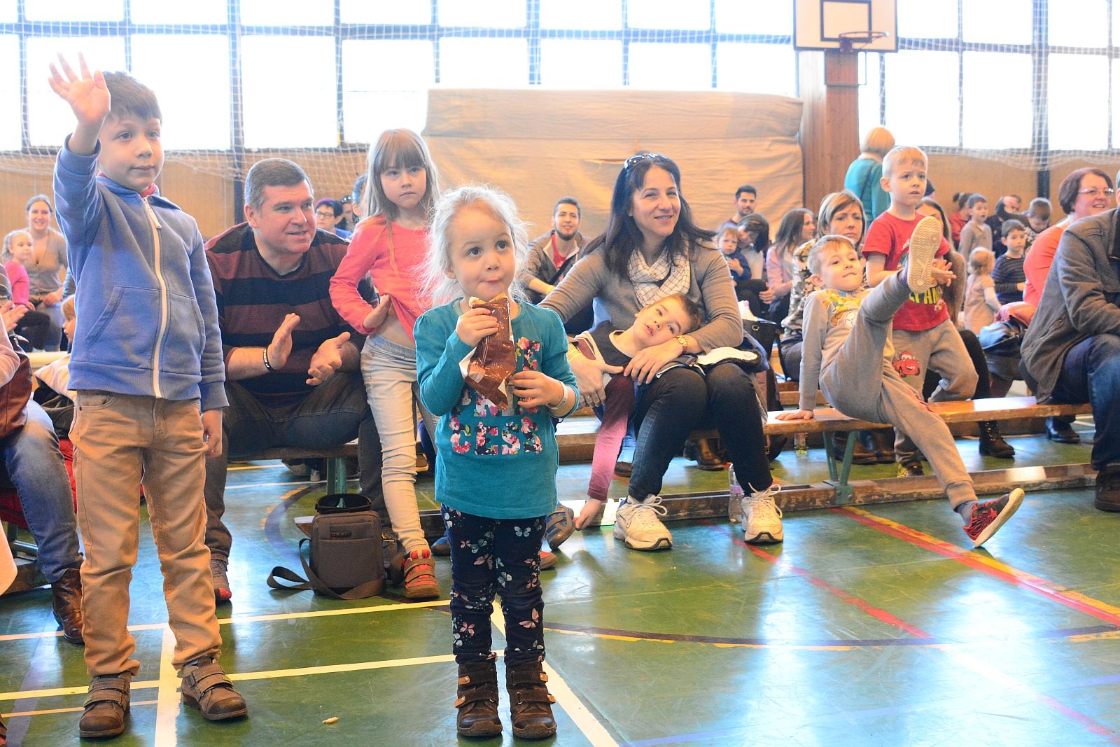 A Napraforgó Meseszínház előadása után pontban 11 órakor a résztvevők egyszerre emelték fel gyermekeiket, majd zenés táncház várta a családokat.