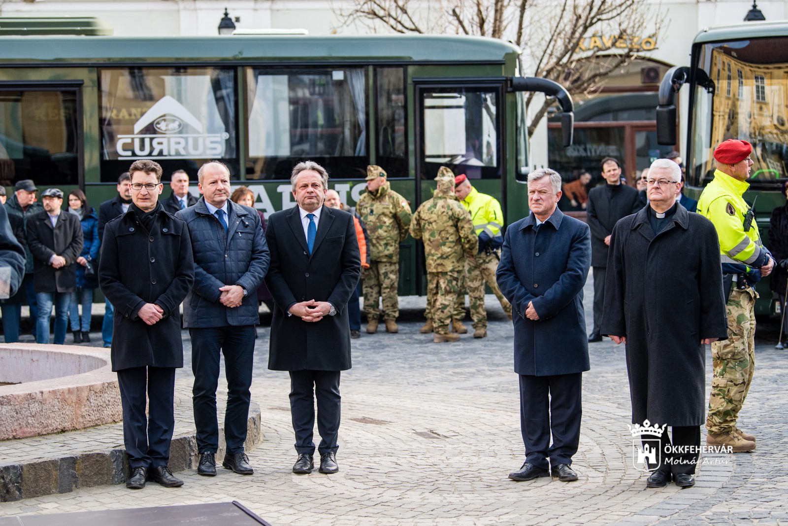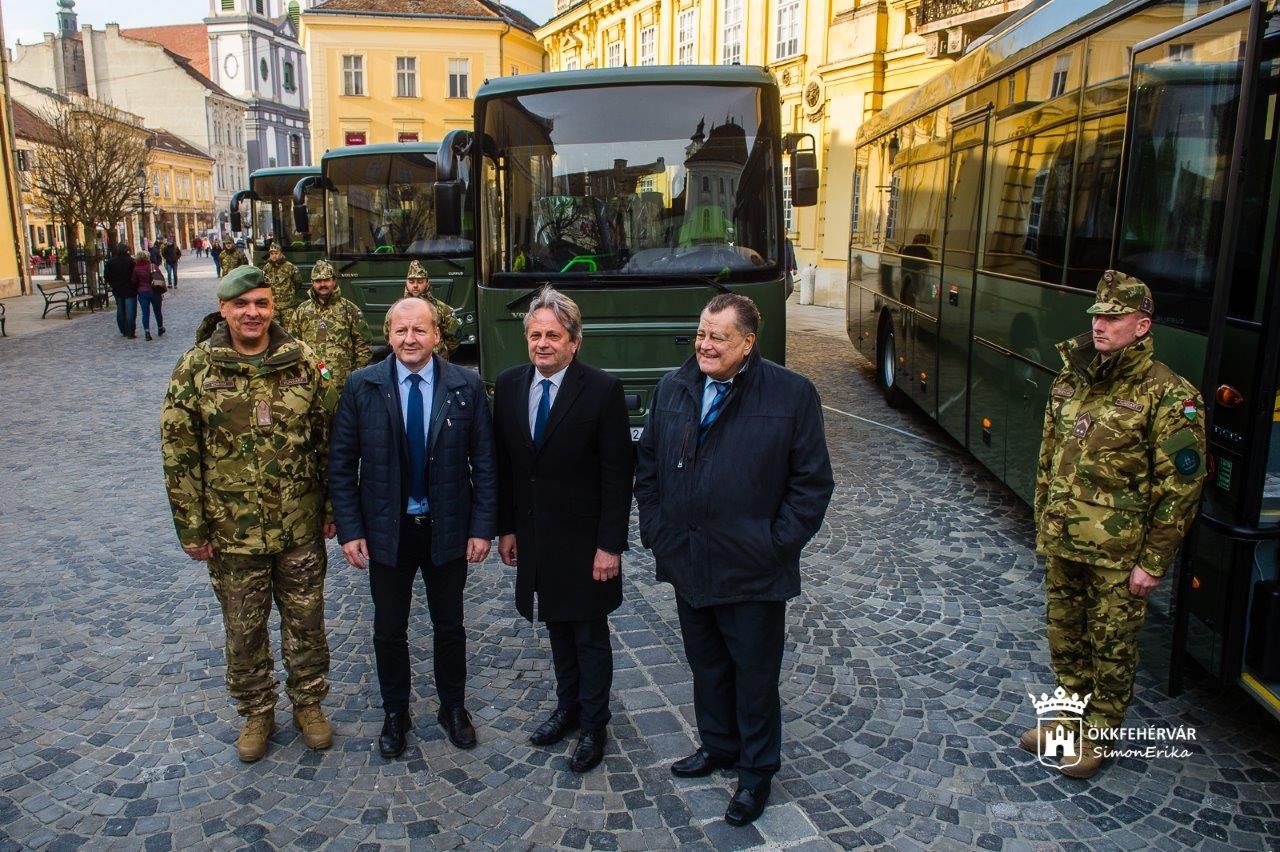 A Városház téren pénteken ünnepélyes keretek között adták át azt a 15 Ikarus buszt, ami a Magyar Honvédség számára készült. A modern, minden igényt kielégítő honvédségi buszok fejlesztési projektje a HM Currus Zrt, az Ikarus Járműtechnika Kft., és a Volvo Bus Corporation közös összefogásával valósult meg.