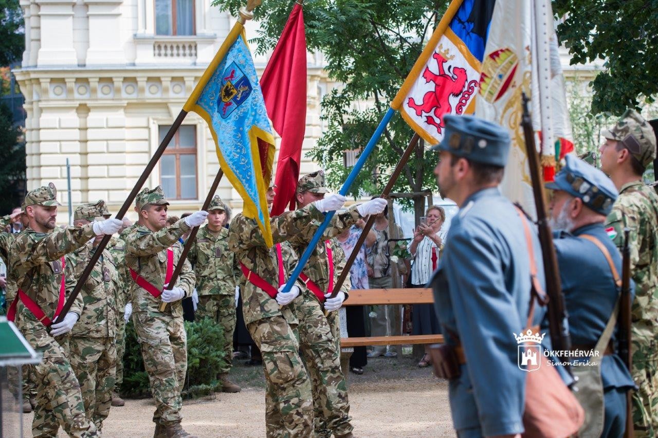 A Zichy ligetben katonai tiszteletadással zajló eseményen beszédet mondott Sipos Antal ezredes, a Magyar Honvédség 6. Sipos Gyula Területvédelmi Ezred parancsnoka.