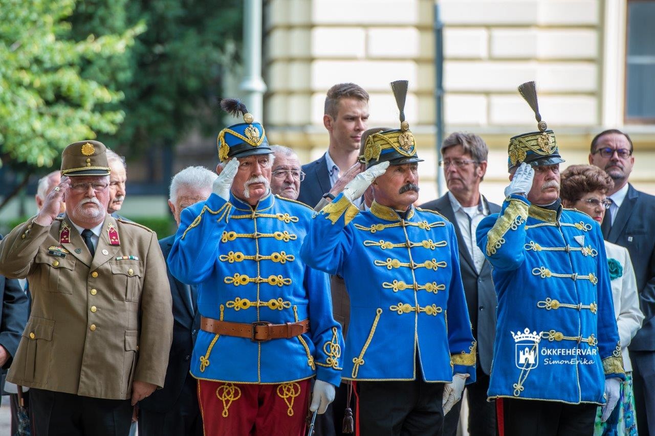 Dr. Molnár Krisztián, a Fejér Megyei közgyűlés elnöke, Róth Péter alpolgármester, Schneider Istvánné járási hivatalvezető helyettes, Sándor Zsolt dandártábornok, az MHP Törzsfőnök Műveleti Helyettese, valamint Sipos Antal ezredes együtt hajtottak fejet, majd a közhivatalok, a fegyveres és rendvédelmi szervek, a honvédelmi hagyományokat ápoló szervezetek képviselői és a civil emlékezők is elhelyezték koszorúikat, virágaikat az emlékműnél.