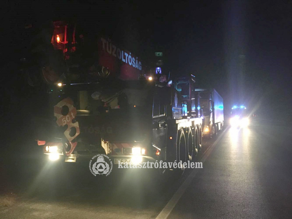 Az üres műanyagrekeszeket szállító kamion üzemanyagtartályából szivárgott a gázolaj, amelyet a megyeszékhely hivatásos tűzoltói tömítőpasztával megszüntettek. A nyerges vontatót daru csörlőjével vontatták ki az árokból. Személyi sérülés nem történt.