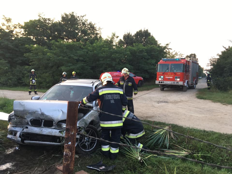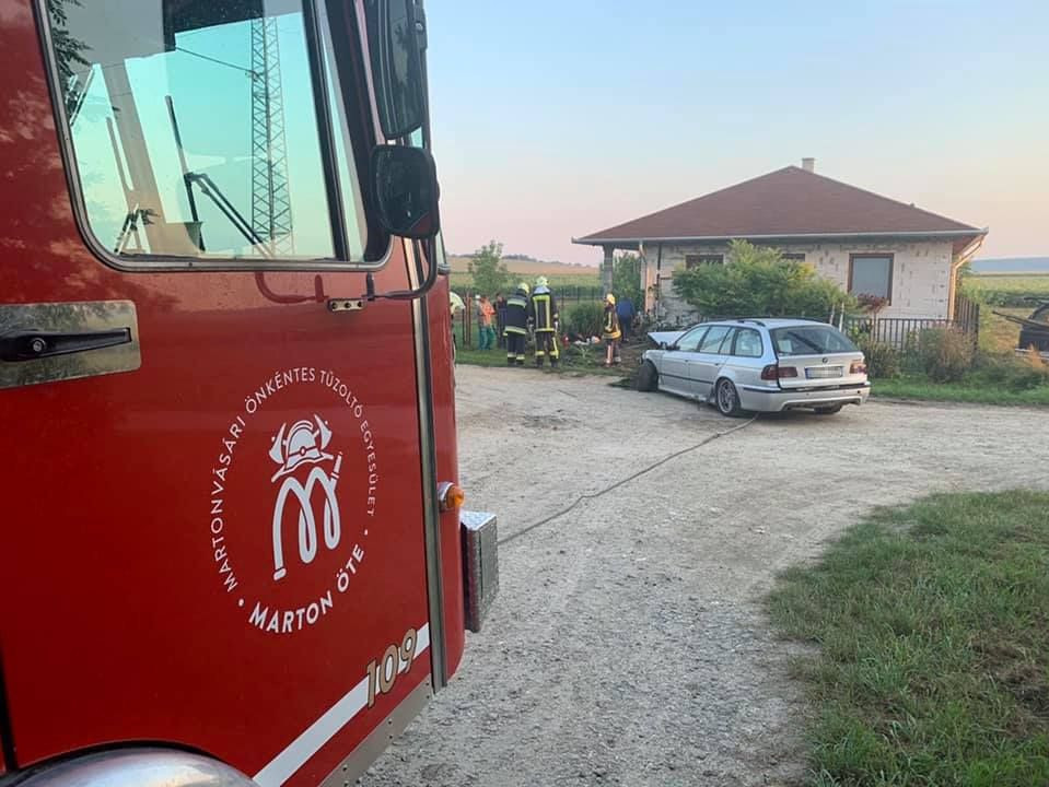 Az autó lesodródott az útról, a vízelvezető árkon túl átszakította az épület fémkerítését és a ház homlokzatát is áttörte. A fal túlsó oldalán alvó két embernek nem esett baja. A váli önkormányzati és a martonvásári önkéntes tűzoltók áramtalanították a személygépkocsit, az alá szorult kerítéselemeket kihúzták, majd drótkötéllel vontatták ki a járművet az udvarról. Az autó vezetőjét és utasát a mentők kórházba szállították.