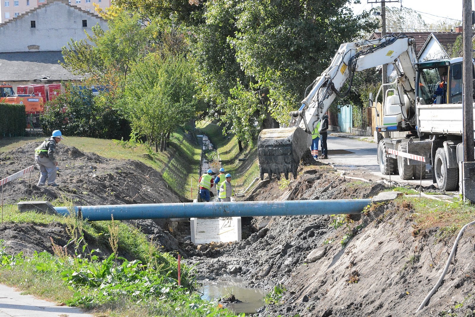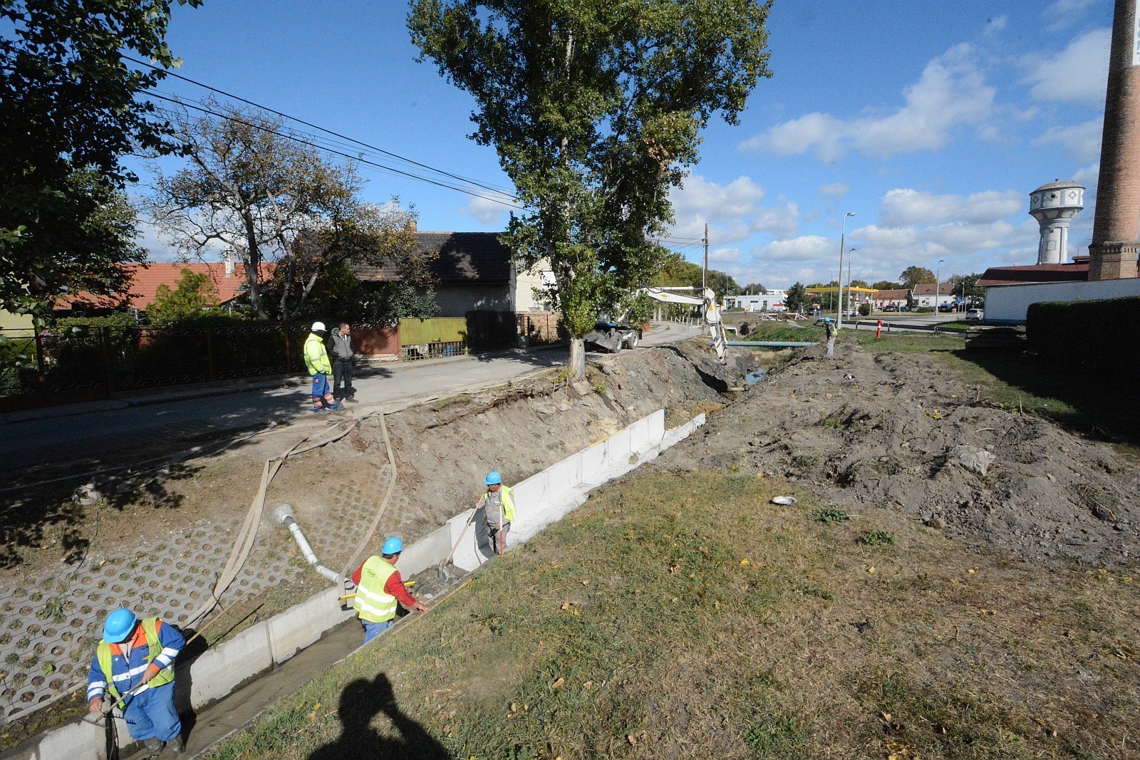 Halad a Varga-csatorna medrének burkolásával a Colas Alterra, már kitisztították az árkot és lerakták az áteresz elemeit is. A 43 millió forintból megvalósuló kivitelezés határideje január közepe.