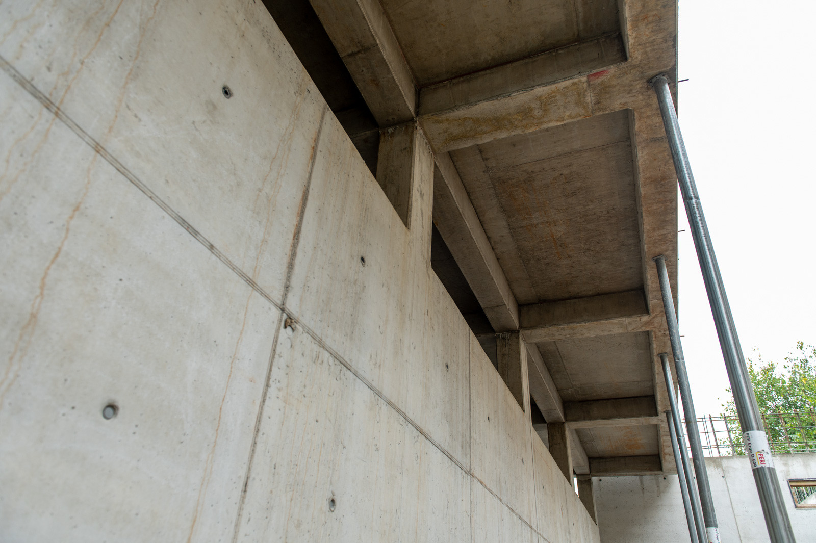 „A falakból függőleges és vízszintes bordák állnak ki, ezek egyszerre erősítik és díszítik a csarnokot. A függőleges és vízszintes merevítő bordák kialakítása rengeteg munkahézagképzést igényelt, cserébe a megjelenésükkel egyedi arculatot adnak majd a csarnoknak.”