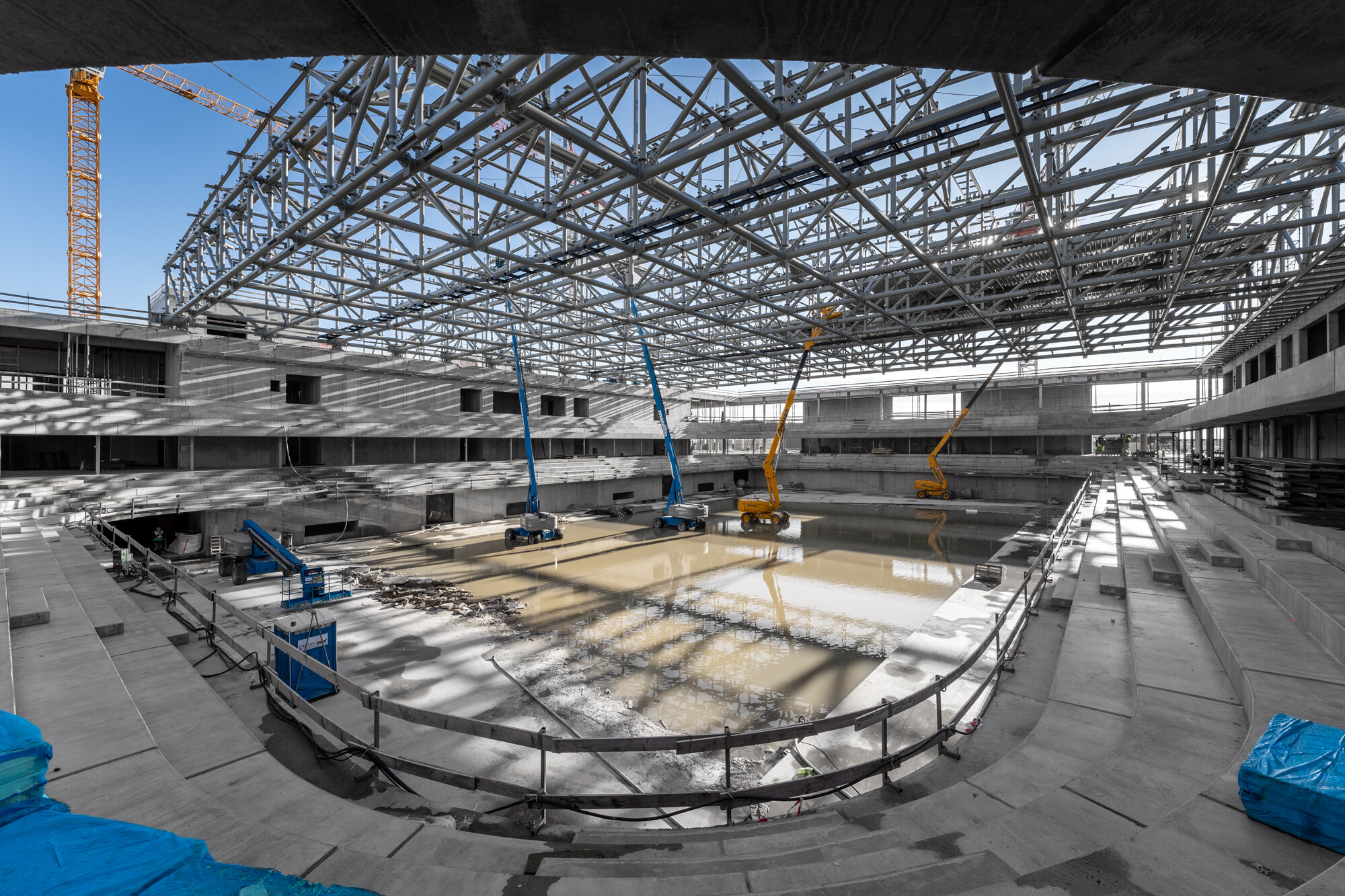 Hozzátették, mindeközben már rendelkezésre állnak a csarnok belsőépítészeti látványtervei is. Cser-Palkovics András, Székesfehérvár polgármestere elmondta, eddig sikerült ez előre tervezett ütemben haladni, azaz az építkezés időarányosan jól tart.