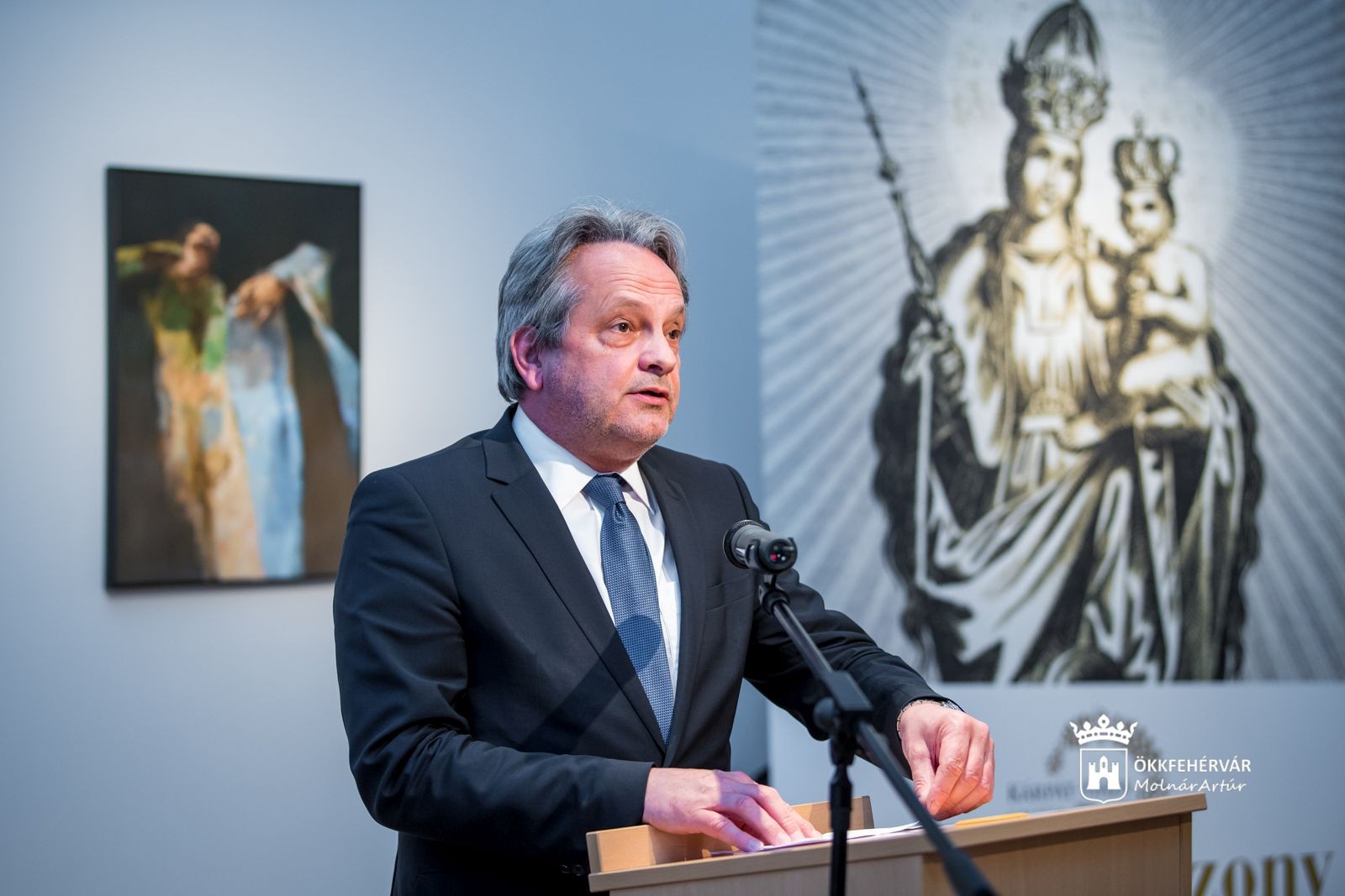 Megemlítette, hogy a kutatóintézet két éve 55 kiemelt kortárs művészt kért fel arra, fogalmazzák meg a Boldogasszony összetett képét. A művek elkészültek és a művészek "létrehoztak egy csodát, ami azt üzeni, hogy csak a Boldogasszonyba vetett hit által lehetünk erősek és szabadok".
