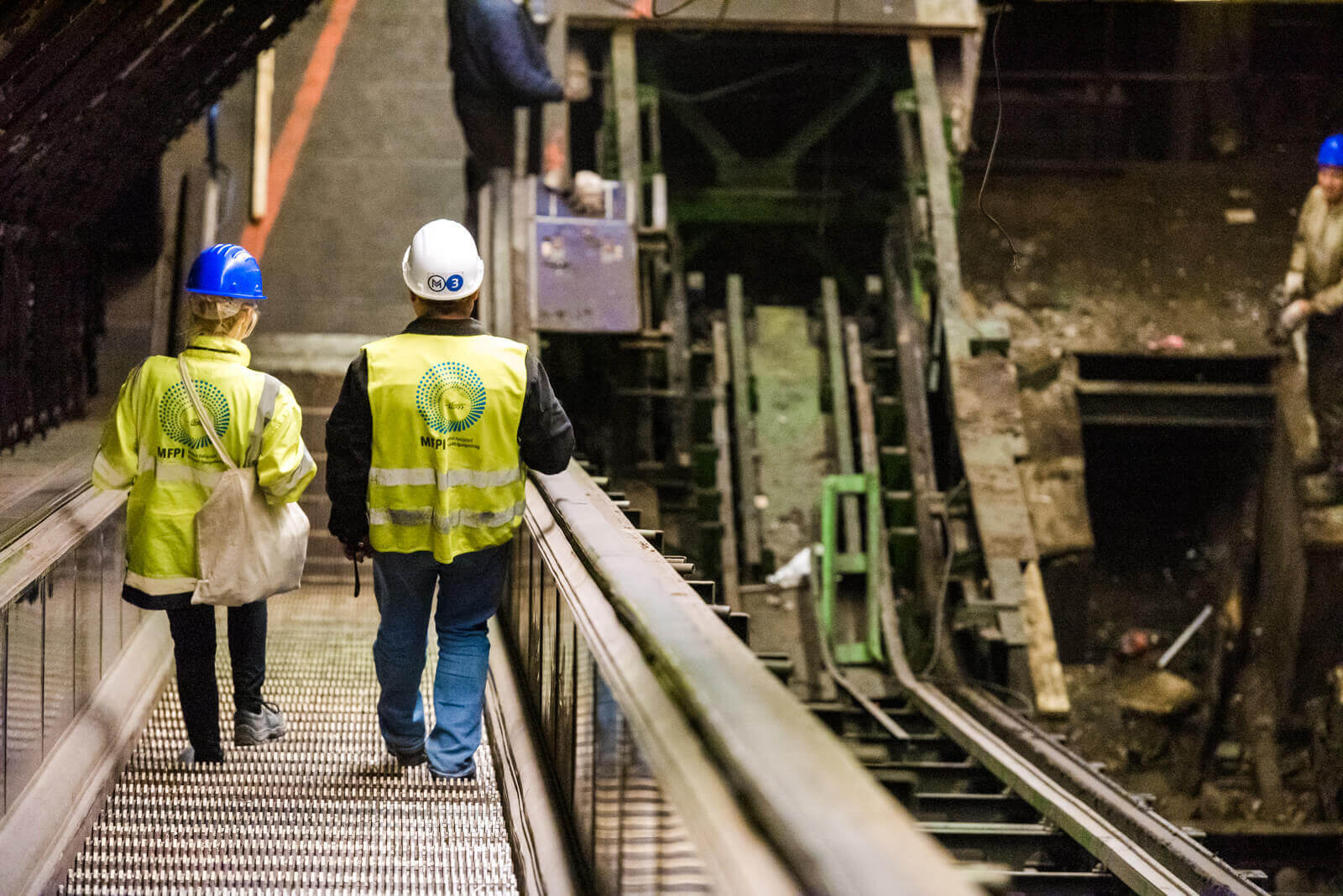 A Ferenciek terén egy mozgólépcsőt már teljes mértékben elbontottak, egyet félig, egyet pedig a munkavállalók közlekedésére használnak. A kibontott mozgólépcsőelemeket egyrész a gépházból a peron szintjére emelik, majd pedig elszállítják a Kőér utcai remízbe a síneken, ahol könnyebben elérhető a felszín.