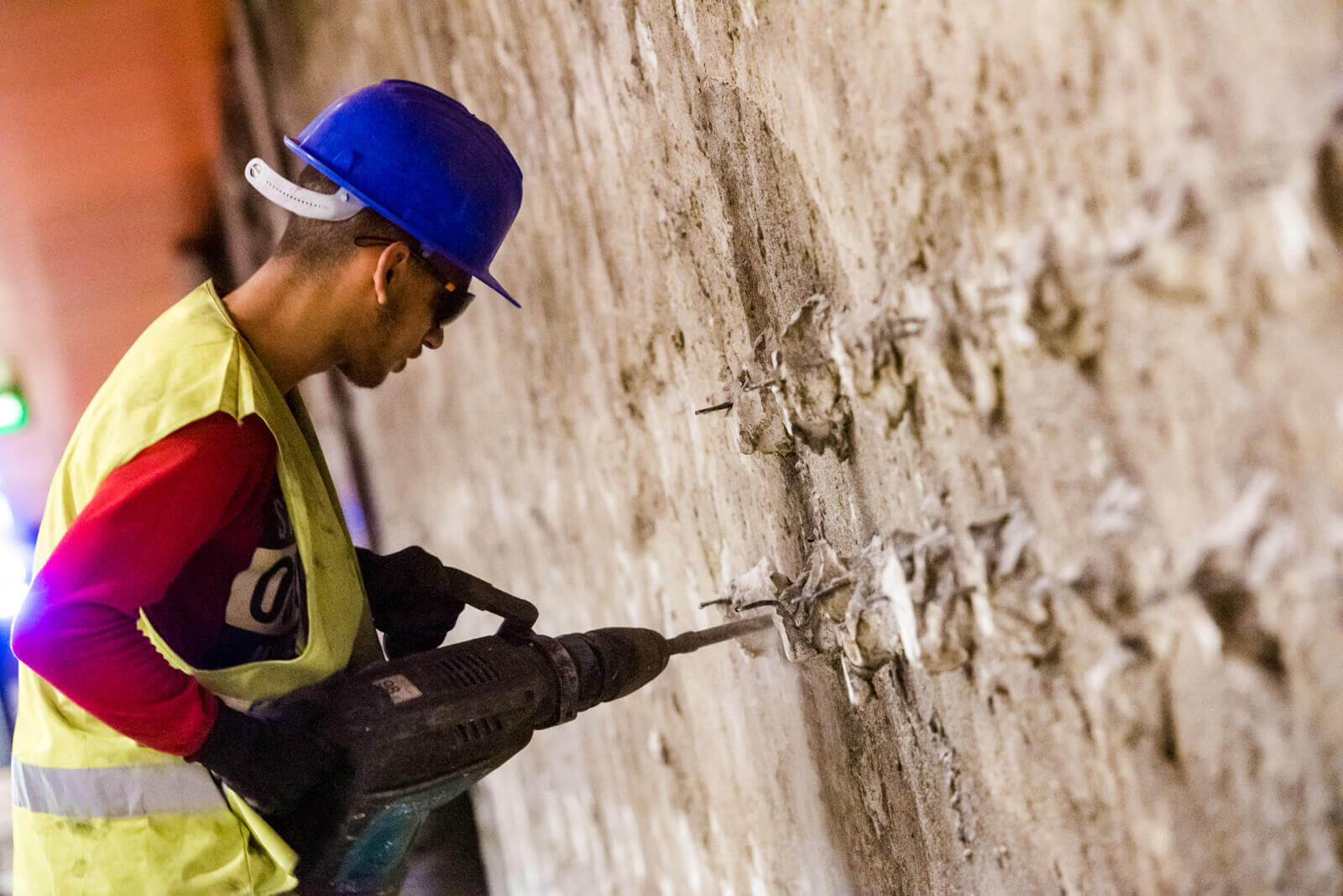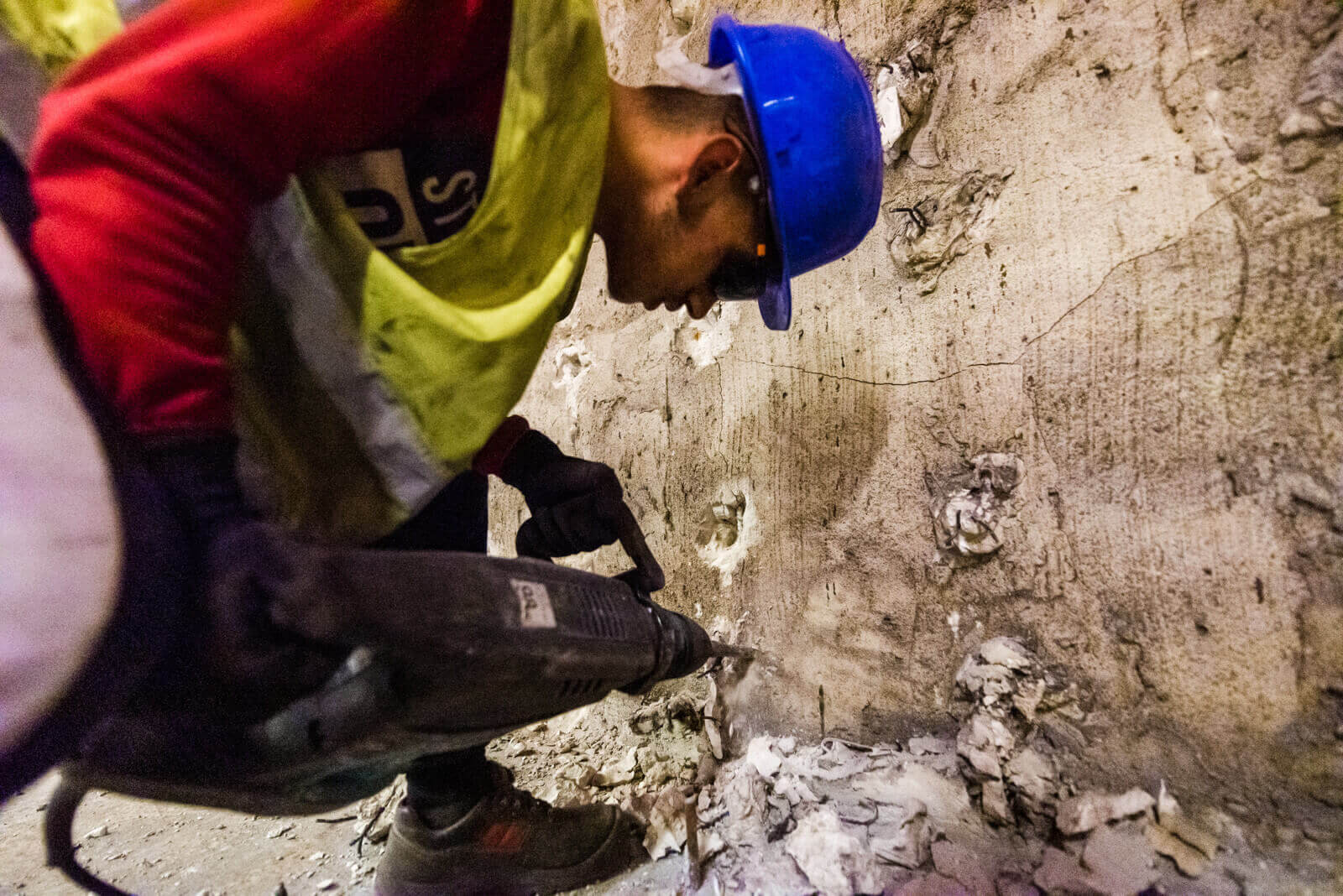A peronon megkezdődött az álmennyezet, illetve a kő falburkolat és annak rögzítőelemeinek bontása, külön figyelemmel a kőlapok megfelelő tárolására.