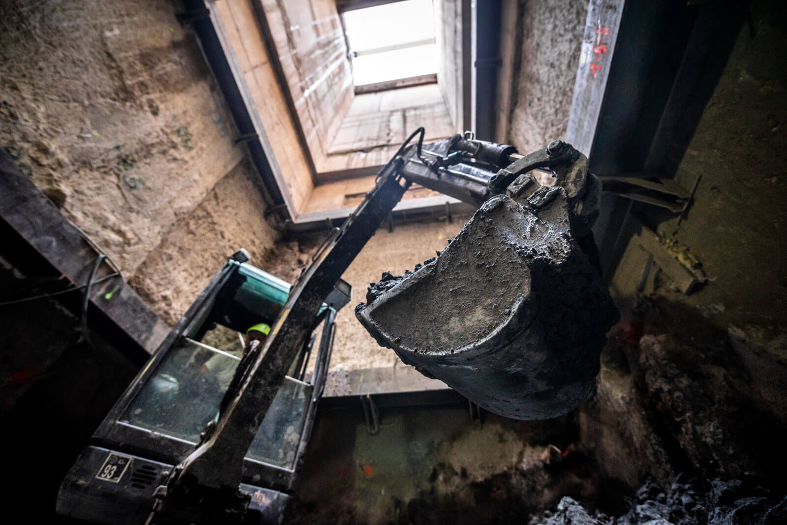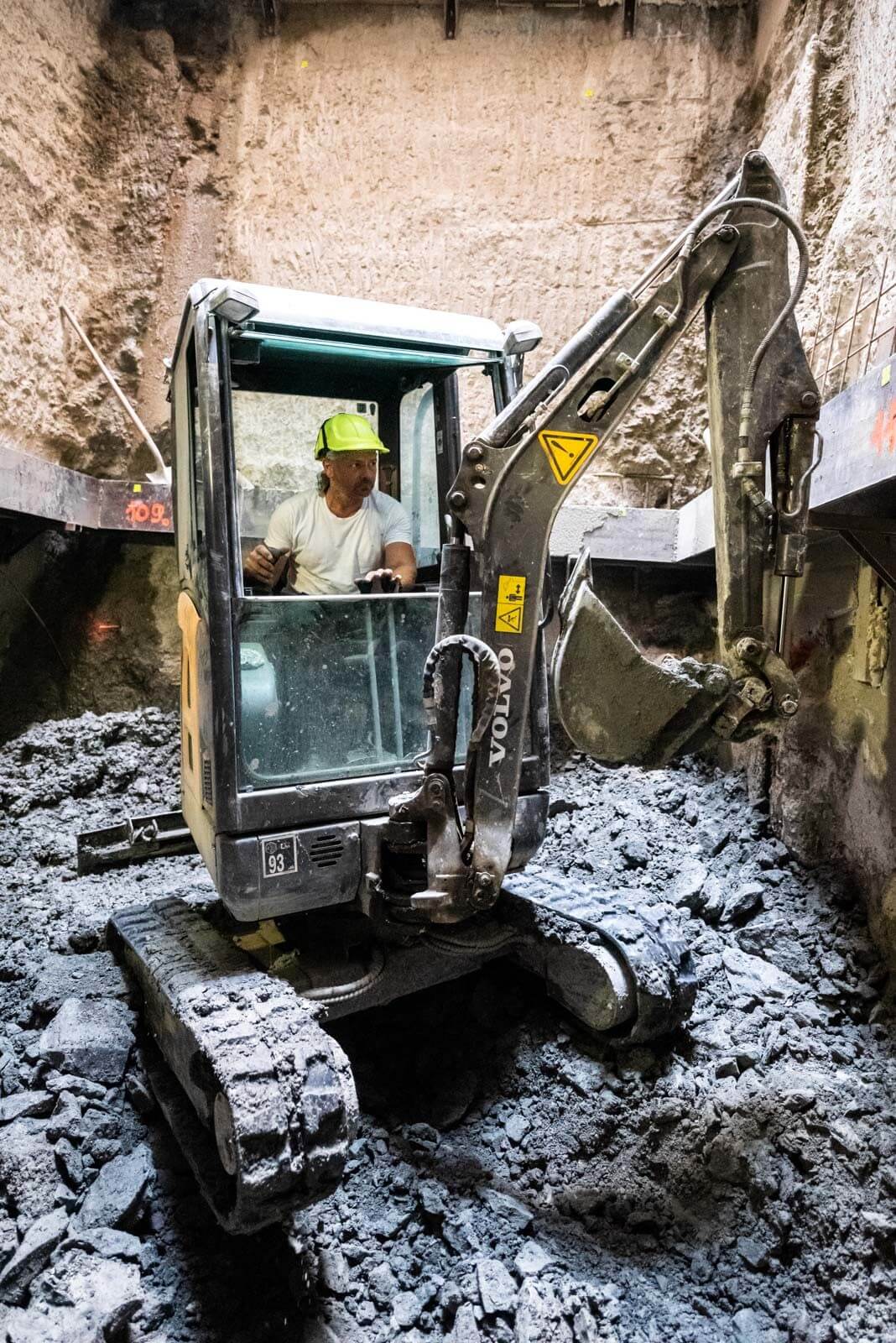 Elbontották a forgalom elől lezárt mozgólépcső lejtakna fémburkolatát, illetve az aluljáróban lévő kőfalak burkolatát is és az alagúton keresztül a hétvégi üzemszünet során a dél-pesti Kőér utcai remízbe szállították, itt érte el a felszínt.