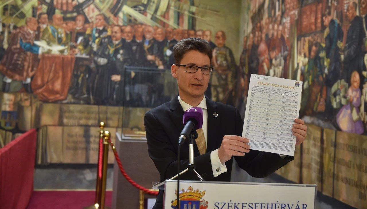 A megyeszékhely polgármesterének már régóta dédelgetett vágya, hogy a koronázási palást hazakerüljön Székesfehérvárra. Április közepén videóüzenetben jelentette be Facebook profilján, hogy az ügyben aláírásgyűjtést kezdeményez. Ennek apropója, hogy ugyan tavaly kérdésére a Nemzeti Múzeum azt válaszolta, a palást nincs szállítható állapotban - ami választ akkor ő tisztelettel el is fogadott -, most mégis felröppent a hír, hogy a Budai Várba szállítanák a műkincset.